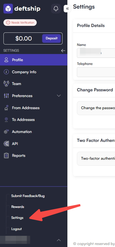 Two-Factor Authentication adds an extra layer of security when signing in to your DeftShip account. In addition to your password, you’ll be required to verify your identity using a second factor, such as a code sent to your mobile device or email.