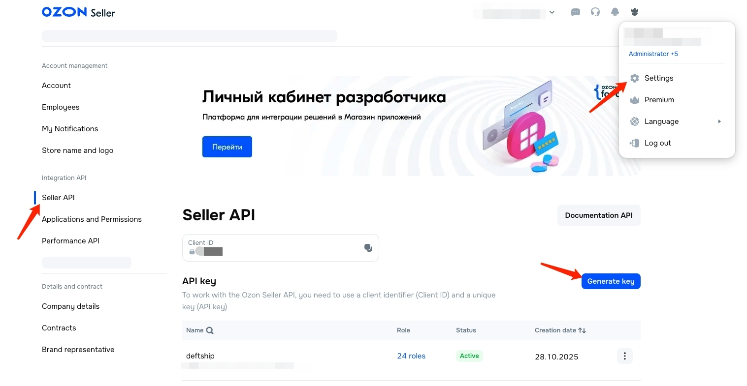 你通常可以在Ozon卖家账户中找到你的客户ID: